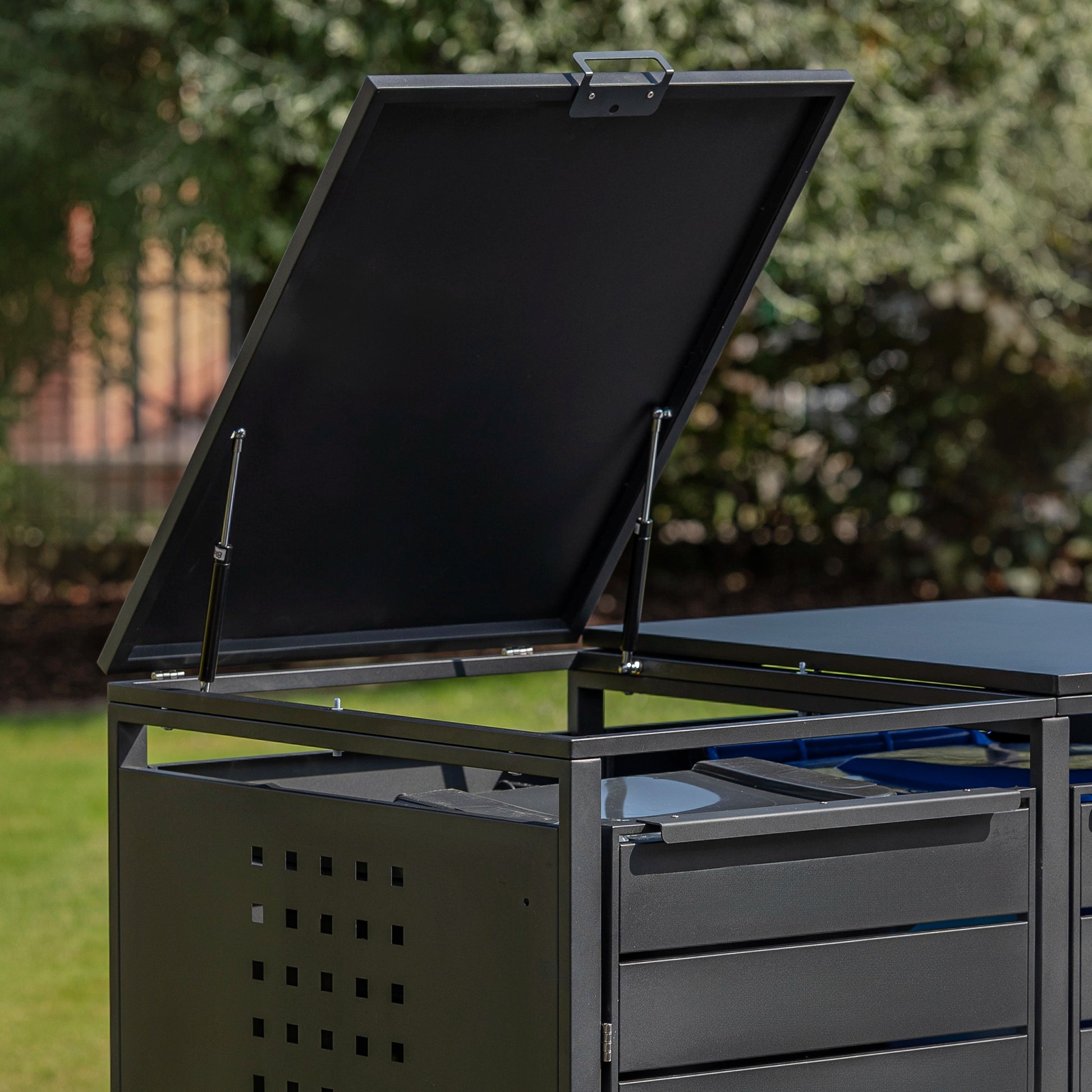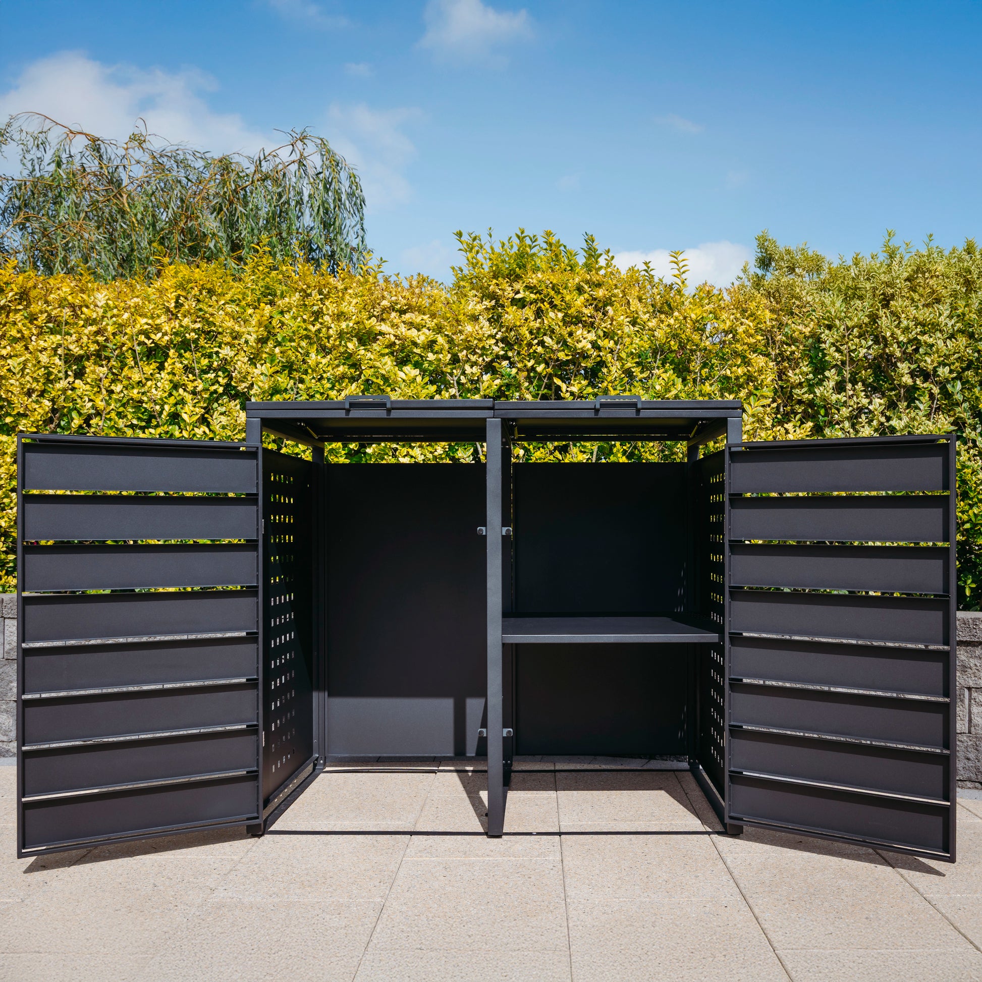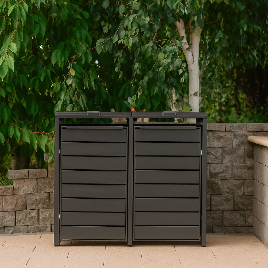 A metal bin store is a secure, weather-resistant storage unit designed to house household bins. It helps keep outdoor spaces tidy, prevents bins from blowing over, and protects them from vandalism, pests, and bad weather.